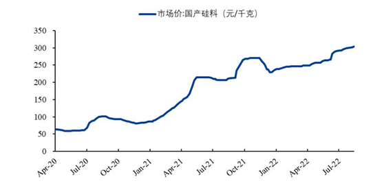 回顾近年来的硅料价格,数据显示,2020年初以来,硅料价格从约70元/kg上涨至2022年三季度的303元/kg,累计涨超三倍,刷新近十年新高。