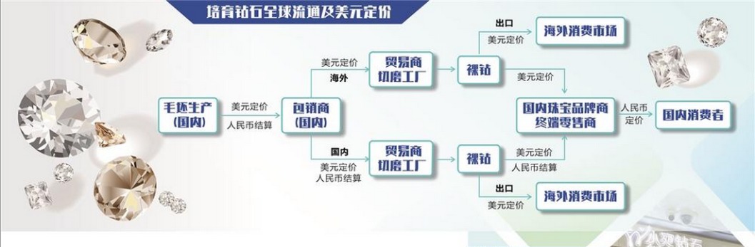 “培育钻石产业链全球分布格局是中国生产(50%份额)、印度切磨(95%份额)以及美国消费(80%份额)。培育钻石采取美元定价的原因,或许是受到培育钻石全球产业链分布的影响。就促进国内市场发展而言,应该是弊大于利。”上述不愿具名行业人士说。