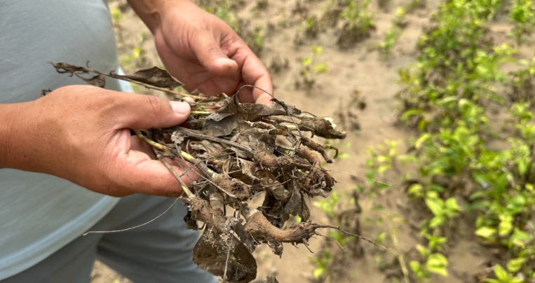 李龙种的另一片种着白术的地块上,已经出现大部分药材烂根、发黄的情况,明显成活率不高。“白术这个品种最怕这种高温天气,今年普遍减产是肯定的。”李龙说道,白术的产新期是在10月份,一般度过异常天气的七八月份危险期,就可以知道产量了。
